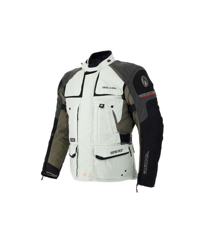 La Richa Atacama Gore-Tex è la compagna di viaggio ideale per il viaggiatore di tutto il mondo. Questa giacca da moto è composta da 3 strati e può quindi essere indossata in 4 stagioni diverse. Tipo di motociclista La Richa Atacama è una giacca da moto avventura molto completa e adatta a tutte le condizioni dei motociclisti avventurosi e turistici. Ha un taglio lungo e comodo ed è impermeabile al 100%. Materiale interno ed esterno Per garantire la necessaria resistenza all'abrasione, la Richa Atacama è realizzata in tessuto AirGuard 500D che offre un'adeguata protezione antiscivolo. Grazie alla sua membrana impermeabile, la Richa Atacama ti garantisce di arrivare da A a B all'asciutto. La membrana rimovibile assicura inoltre che l'umidità non possa penetrare nella giacca da moto. Dietro la membrana Gore-Tex si trova una fodera termica rimovibile che isola il calore del corpo e protegge dagli agenti atmosferici. Quando la temperatura aumenta, è possibile utilizzare le 8 aperture di ventilazione. Protezioni Come ci si aspetta da Richa, questa giacca da moto è dotata di protezioni D3O su spalle, gomiti e schiena. Il D3O ha la proprietà di indurirsi solo in caso di impatto, dove si consuma delicatamente. Sono tutti conformi al livello 1 della norma CE e realizzati in un materiale flessibile che migliora anche il comfort. Abbinala ai pantaloni da moto Richa grazie alla cerniera di collegamento per un abbigliamento da turismo ottimale. I dettagli riflettenti ti rendono ancora più visibile al buio. Opzioni Nella parte inferiore della giacca è presente una cerniera di collegamento che consente di abbinare facilmente pantaloni e giacca. La cerniera ha la funzione di tenere insieme le due parti in caso dichute.Champe di applicazione Giacca Richa con protezioni D3O