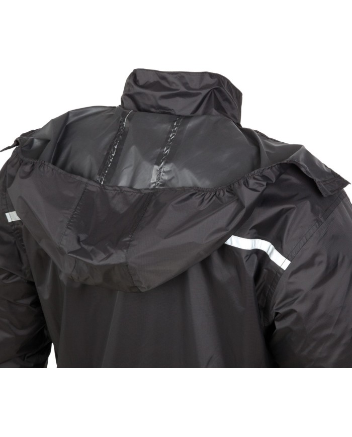 HYDROSCUD®: esterno in poliammide, traspirante, antivento e idrorepellente con elevata colonna d'acqua cuciture saldate barriera d'acqua sulla cerniera centrale (colletto incluso) EN 14360:2004 -RAIN TOWER TESTED inserti riflettenti cappuccio ergonomico riponibile nel collo cordino di chiusura nella parte inferiore Imballato in una borsa poco ingombrante