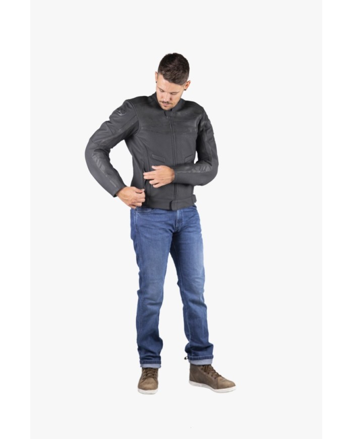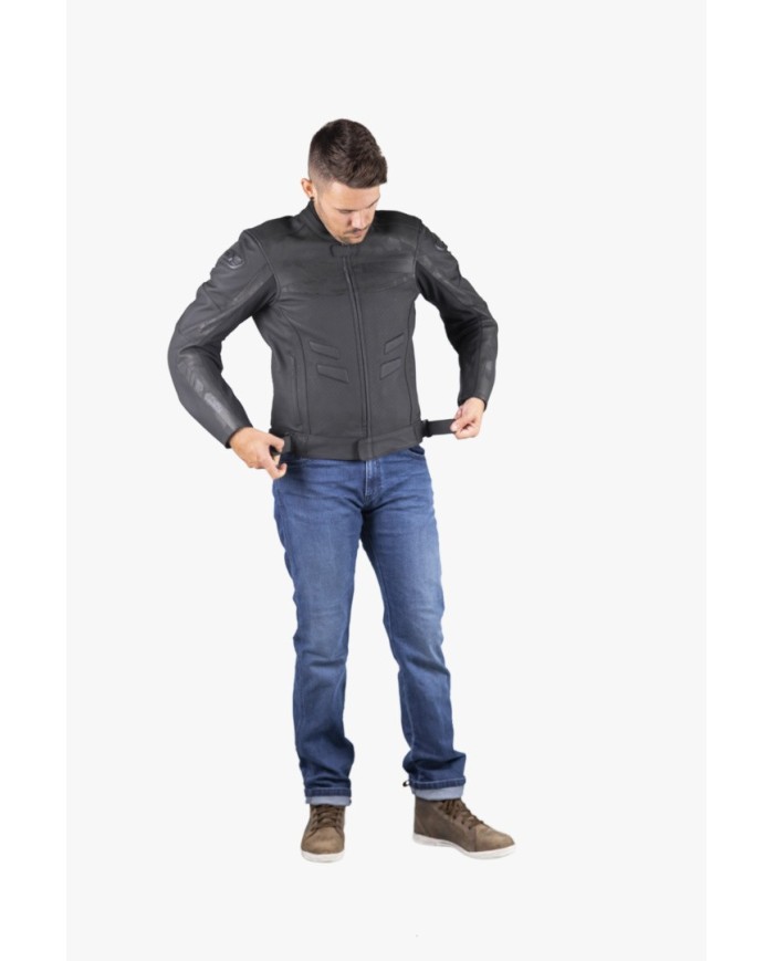 Giacca touring sportiva traforata in pelle di vacchetta pieno fiore