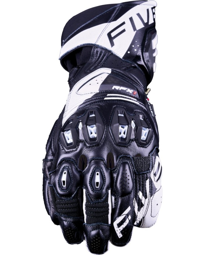 - Fascia anti-torsione in pelle di capra e Schoeller®-Keprotec tra l'anulare e il mignolo per limitare il rischio di separazione delle dita in caso di caduta (un'innovazione FIVE) Rinforzo del palmo stampato digitalmente in pelle di capra per una presa ottimale