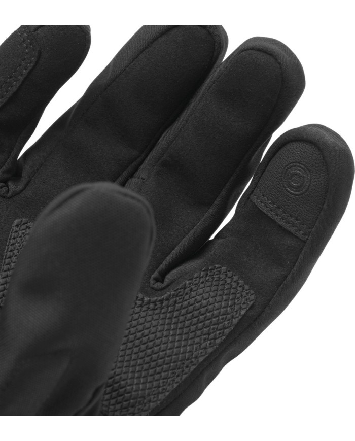 Modello lungo. Inserti in poliestere elasticizzato sulle dita. Polsino in tessuto Polystrong con chiusura in velcro. Indice compatibile con i touch screen. Panno per pulire la visiera.