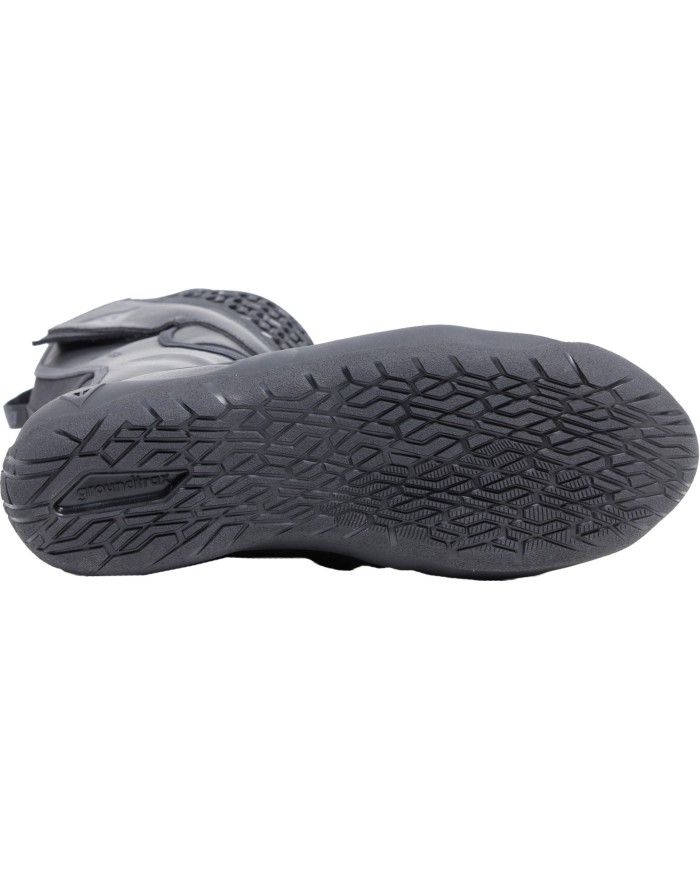 La suola è in Groundtrax® con una mescola e un disegno specifici per i viaggi su strada e le rare uscite fuoristrada, in modo da garantire stabilità e aderenza su diversi terreni e il massimo comfort quando si scende dalla moto. Le suole sono asimmetriche per adattarsi alle leve utilizzate sulla moto.