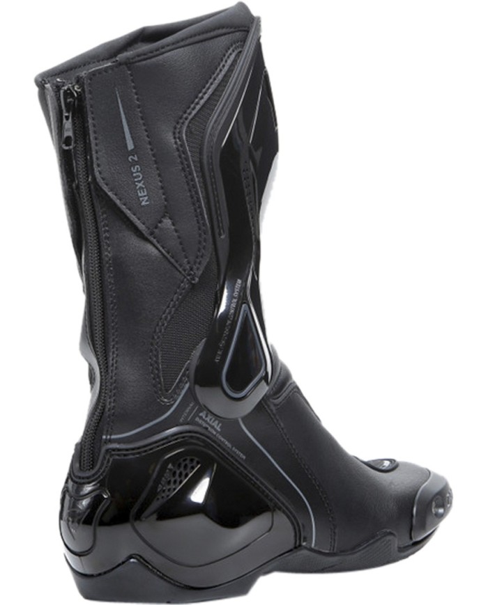 Stivali da moto sportivi da donna Dainese Nexus 2 Lady, con protezioni certificate, appositamente progettati per adattarsi all'ergonomia del piede femminile. Realizzati in microfibra e D-Stone con inserti in nylon sul tallone, sono dotati di cursori termoplastici sostituibili, del sistema di flessione controllata dell'articolazione della caviglia Axial Distortion Control System e di inserti in nylon sul tallone. Rappresentano il connubio perfetto tra alti livelli di protezione, massimo comfort e grande leggerezza.