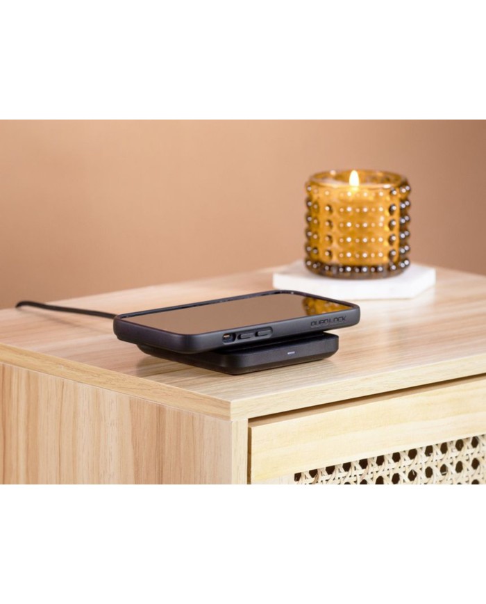 Con una base in alluminio lavorato nero e un cuscinetto antiscivolo morbido al tatto, il caricabatterie wireless si integrerà perfettamente in qualsiasi spazio della tua casa e del tuo ufficio.