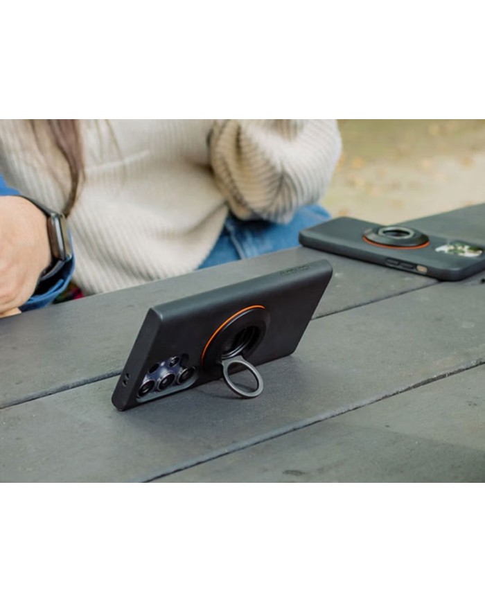 Basta posizionare l'anello/espositore per telefono e apribottiglie sul retro della custodia MAG? delQuad Locke lasciare che i magneti facciano il resto.