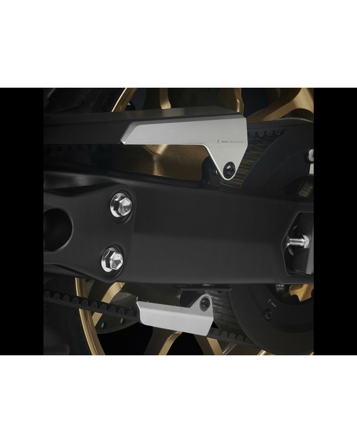 Il coperchio della cinghia Rizoma in alluminio anodizzato (0,48 kg) è stato progettato con cura: un altro dettaglio significativo nella gamma di accessori Rizoma per il tuo T-Max.