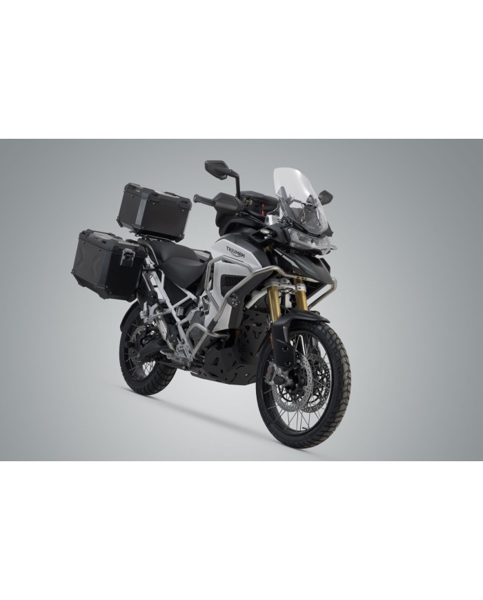 Questo set è il pacchetto completo per ogni tour. Le valigie in alluminio TRAX ADV Premium, impermeabili all'acqua e alla polvere, due valigie laterali e un bauletto, offrono la migliore protezione per i vostri bagagli. Lo sviluppo specifico per il modello del supporto laterale PRO rimovibile e del portapacchi ADVENTURE-RACK garantisce una perfetta adattabilità e una tenuta sicura delle valigie in alluminio.
