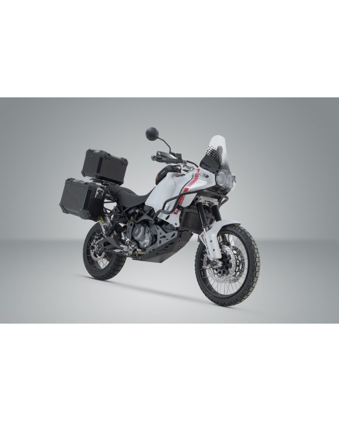 Questo set è il pacchetto completo per ogni tour. Le valigie in alluminio TRAX ADV Premium, impermeabili all'acqua e alla polvere, due valigie laterali e un bauletto, offrono la migliore protezione per i vostri bagagli. Lo sviluppo specifico per il modello del supporto laterale PRO rimovibile e del portapacchi ADVENTURE-RACK garantisce una perfetta adattabilità e una tenuta sicura delle valigie in alluminio.
