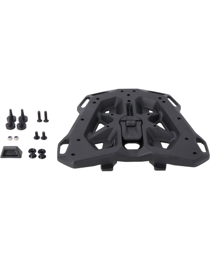 Questa piastra di adattamento può essere montata sul portapacchi STREET-RACK senza attrezzi e con una sola mano. La piastra di adattamento viene semplicemente inserita sul portapacchi e bloccata con un fermo. Dopo l'uso, la piastra di adattamento può essere rimossa in pochi secondi e solo il portapacchi rimane sulla moto. La piastra di adattamento convince anche grazie alla sua ampia superficie di contatto piatta e ai sei grandi occhielli di fissaggio. Nella fornitura è incluso un kit di adattamento per il fissaggio di un bauletto TRAX ADV, ION o EVO delSW-MOTECH.