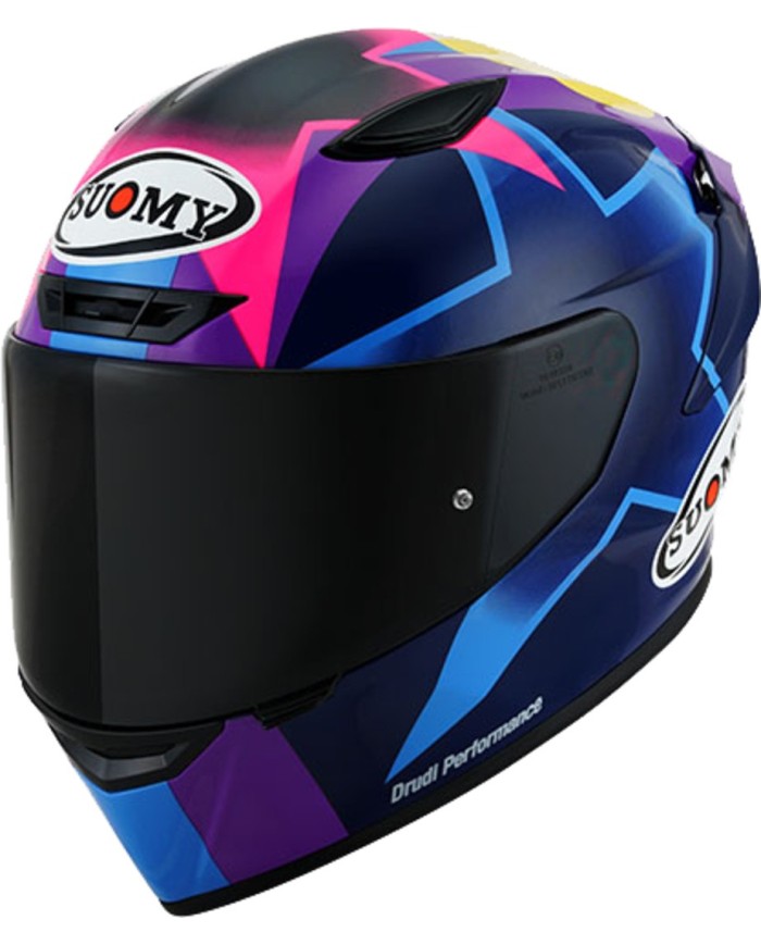 Il TRACK-1 è il casco integrale di nuova generazione delSuomy, realizzato in composito TRICARBOCO (Kevlar/Carbonio/Fibra di vetro). Le sue forme dinamiche e orientate alle prestazioni sono state progettate in galleria del vento per offrire un perfetto equilibrio tra uso su strada e pista.