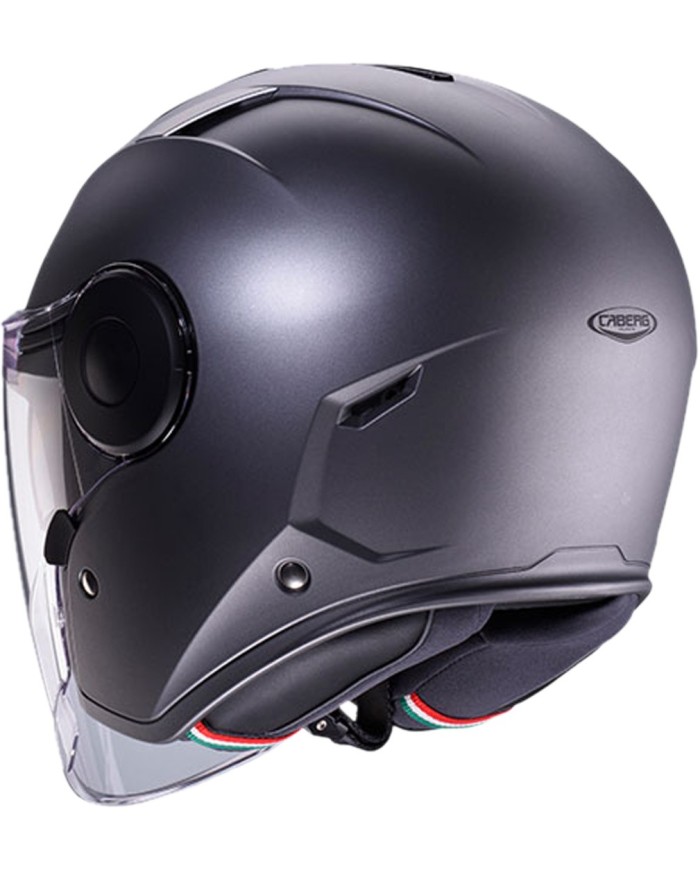 Il SOHO è un casco jet omologato ECE 22.06 con visiera antigraffio, visiera parasole DVT e interni rimovibili. Ideale per l'uso quotidiano, i viaggi extraurbani e la comunicazione Bluetooth con Caberg Pro Speak EVO.