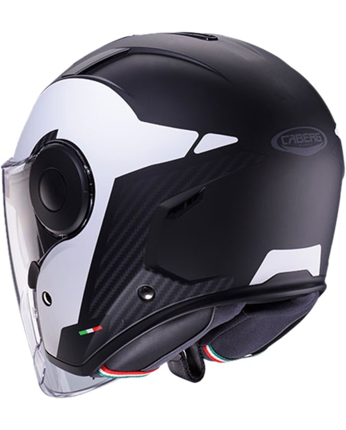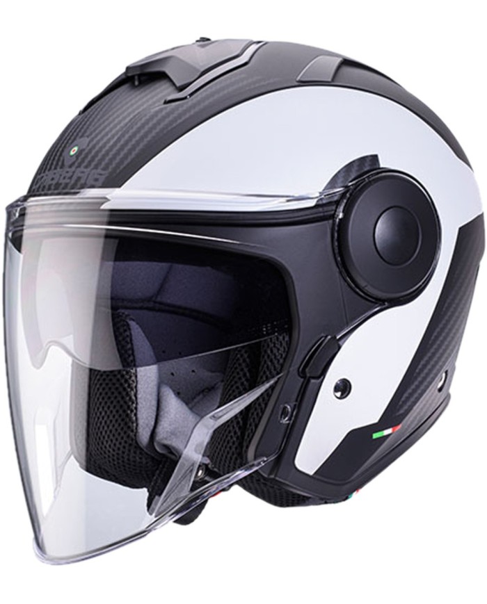 Il SOHO è un casco jet omologato ECE 22.06 con visiera antigraffio, visiera parasole DVT e interni rimovibili. Ideale per l'uso quotidiano, i viaggi extraurbani e la comunicazione Bluetooth con Caberg Pro Speak EVO.