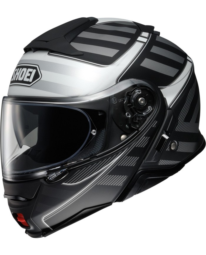 • Un sistema di bloccaggio a due livelli quando il casco è aperto consente la doppia omologazione Jet/Fullface