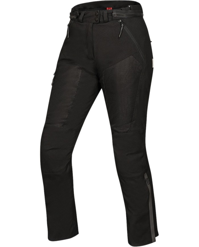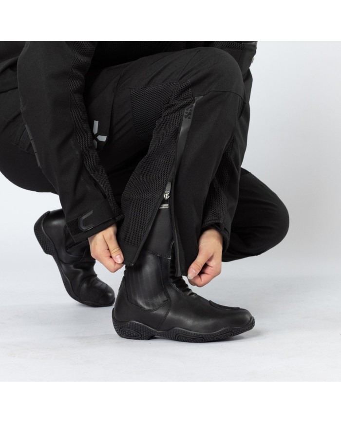 Per favorire la regolazione della temperatura, abbiamo inserito ampie zone in rete per ottimizzare la ventilazione. Abbiamo optato per una fodera leggera e traspirante per un maggiore comfort anche nel lungo periodo. Le tasche anteriori con cerniera e la tasca cargo sulla gamba consentono di trasportare oggetti in tutta sicurezza mentre si guida la moto.