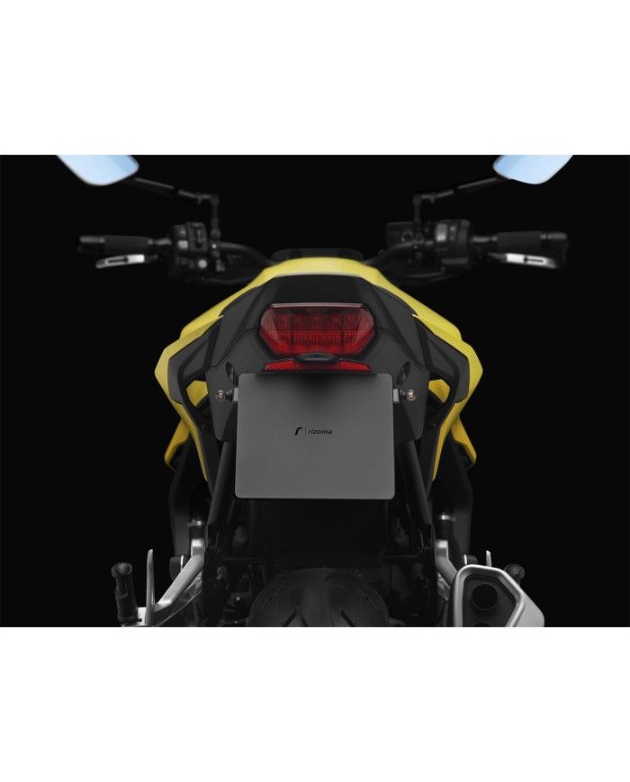 Il supporto per targa Fox in alluminio è progettato appositamente per ogni modello di moto. Ciò gli consente non solo di adattarsi perfettamente alle linee della moto, ma anche di distinguersi per la sua installazione semplice e veloce. Ogni kit contiene tutti i componenti necessari per il montaggio, senza necessità di modificare i componenti OEM. Massima funzionalità in uno spazio ridotto e rispetto delle norme di omologazione. I kit Fox comprendono un'illuminazione della targa a LED SMD, un riflettore e adattatori per indicatori di direzioneRizoma, sono regolabili e dotati di un dispositivo di bloccaggio per fissare la corretta inclinazione.