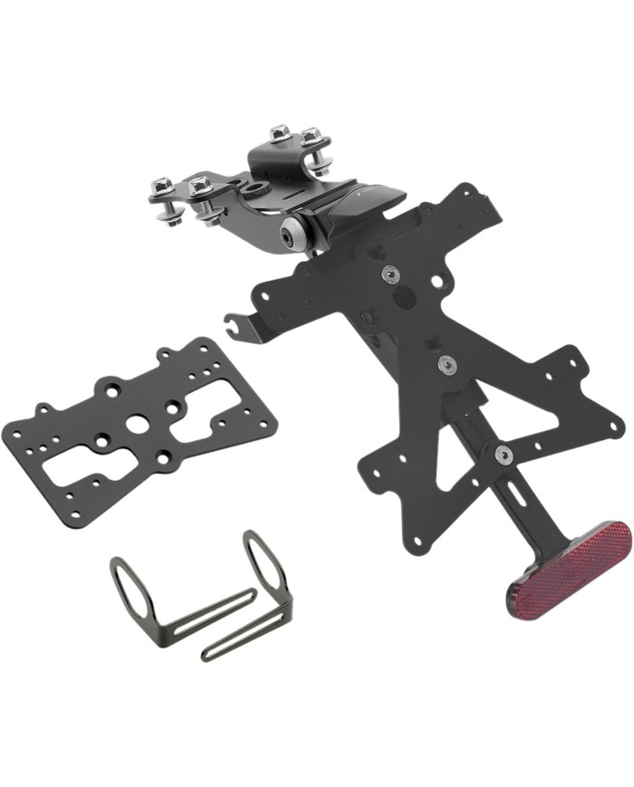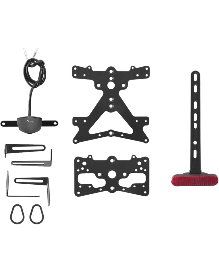 Il supporto per targa Fox in alluminio è progettato appositamente per ogni modello di moto. Ciò gli consente non solo di adattarsi perfettamente alle linee della moto, ma anche di distinguersi per la sua installazione semplice e veloce. Ogni kit contiene tutti i componenti necessari per il montaggio, senza necessità di modificare i componenti OEM. Massima funzionalità in uno spazio ridotto e rispetto delle norme di omologazione. I kit Fox comprendono un'illuminazione della targa a LED SMD, un riflettore e adattatori per indicatori di direzioneRizoma, sono regolabili e dotati di un dispositivo di bloccaggio per fissare la corretta inclinazione.