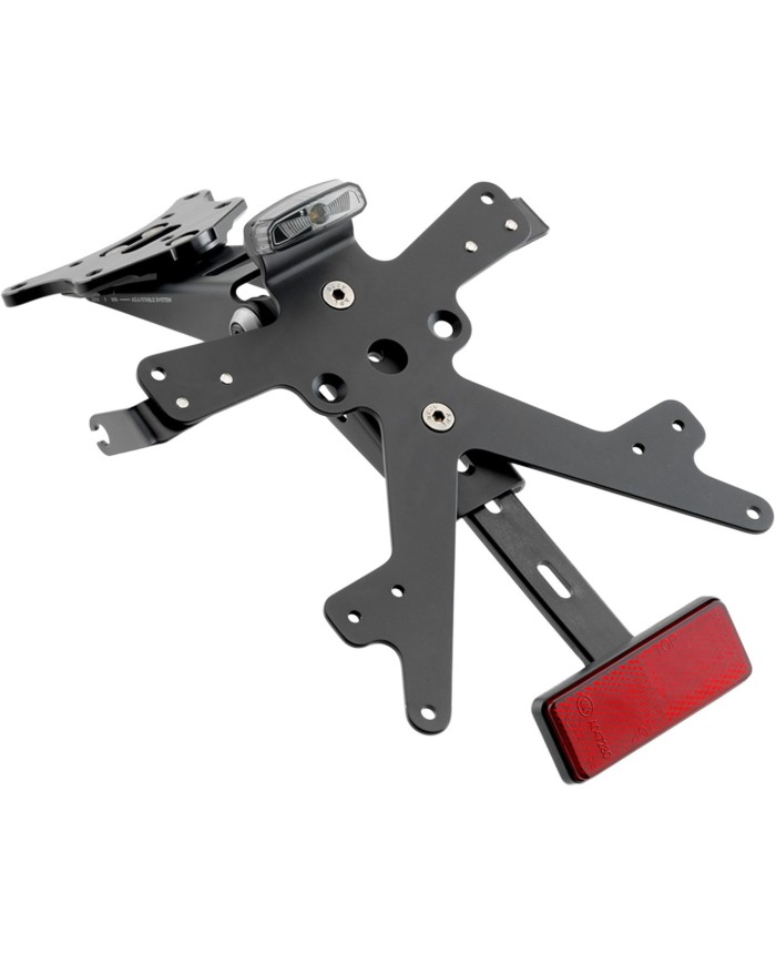 Il supporto per targa Fox in alluminio è progettato appositamente per ogni modello di moto. Ciò gli consente non solo di adattarsi perfettamente alle linee della moto, ma anche di distinguersi per la sua installazione semplice e veloce. Ogni kit contiene tutti i componenti necessari per il montaggio, senza necessità di modificare i componenti OEM. Massima funzionalità in uno spazio ridotto e rispetto delle norme di omologazione. I kit Fox comprendono un'illuminazione della targa a LED SMD, un riflettore e adattatori per indicatori di direzioneRizoma, sono regolabili e dotati di un dispositivo di bloccaggio per fissare la corretta inclinazione.