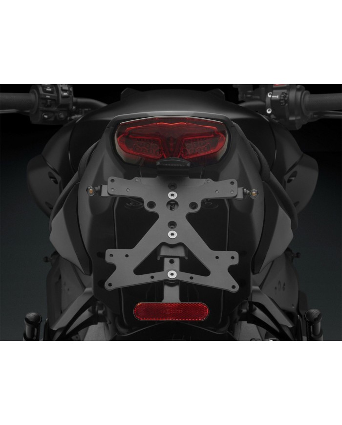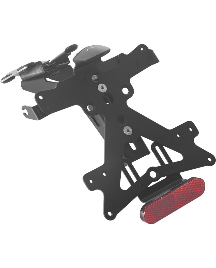 Il supporto per targa Fox in alluminio è progettato appositamente per ogni modello di moto. Ciò gli consente non solo di adattarsi perfettamente alle linee della moto, ma anche di distinguersi per la sua installazione semplice e veloce. Ogni kit contiene tutti i componenti necessari per il montaggio, senza necessità di modificare i componenti OEM. Massima funzionalità in uno spazio ridotto e rispetto delle norme di omologazione. I kit Fox comprendono un'illuminazione della targa a LED SMD, un riflettore e adattatori per indicatori di direzioneRizoma, sono regolabili e dotati di un dispositivo di bloccaggio per fissare la corretta inclinazione.