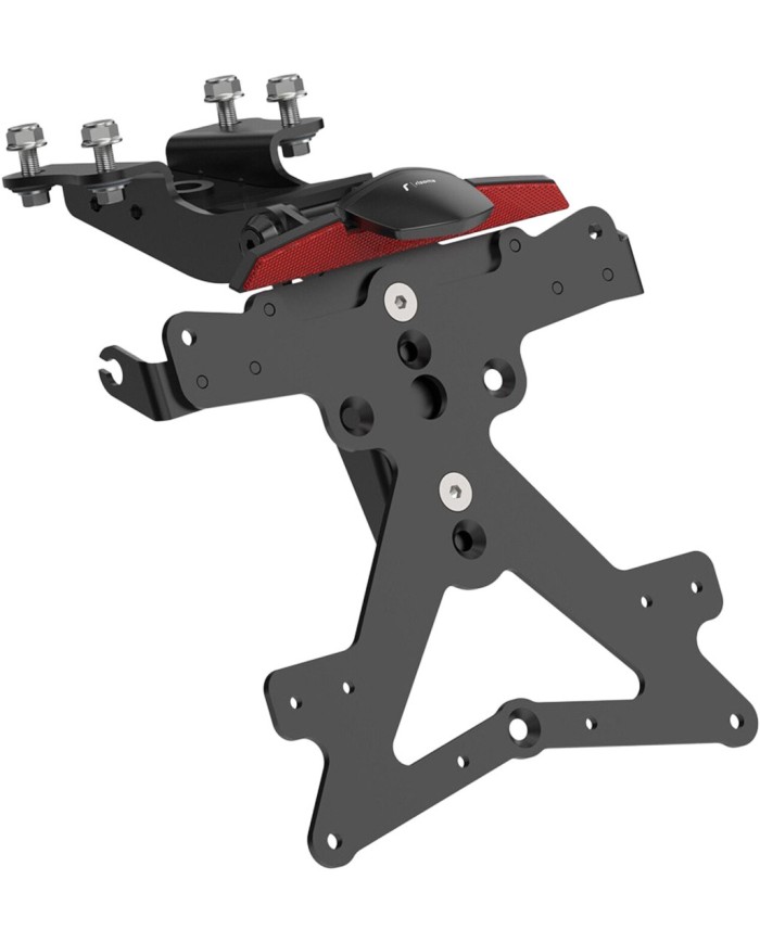 Il supporto per targa Fox in alluminio è progettato appositamente per ogni modello di moto. Ciò gli consente non solo di adattarsi perfettamente alle linee della moto, ma anche di distinguersi per la sua installazione semplice e veloce. Ogni kit contiene tutti i componenti necessari per il montaggio, senza necessità di modificare i componenti OEM. Massima funzionalità in uno spazio ridotto e rispetto delle norme di omologazione. I kit Fox comprendono un'illuminazione della targa a LED SMD, un riflettore e adattatori per indicatori di direzioneRizoma, sono regolabili e dotati di un dispositivo di bloccaggio per fissare la corretta inclinazione.