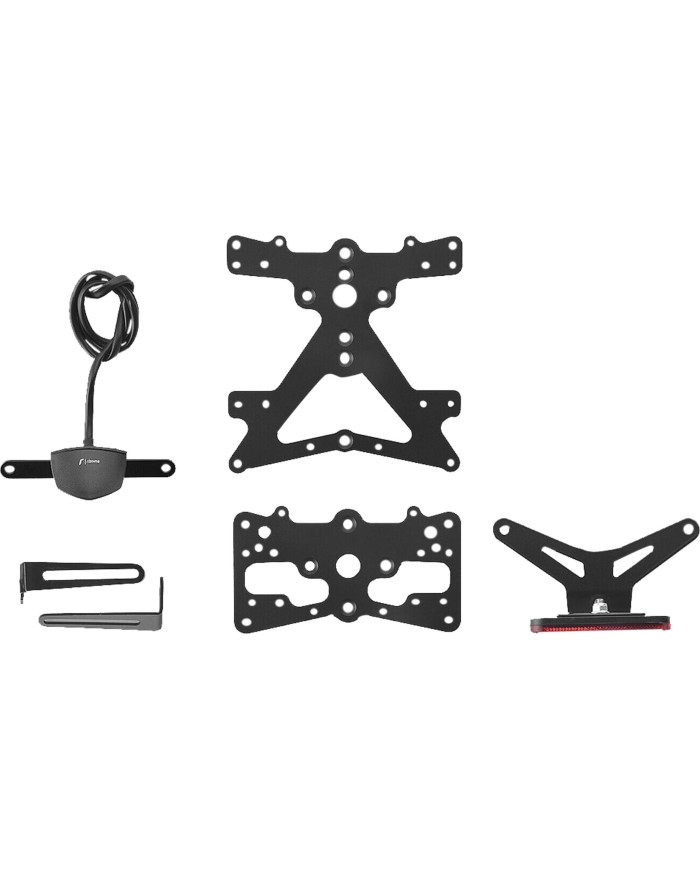 Il kit portatarga Outside con struttura portante in alluminio ricavata dal pieno sostituisce il componente OEM e combina diversi materiali e processi di produzione. Oltre alle eccellenti prestazioni strutturali, conferisce all'asse posteriore un look elegante e accattivante, rendendo la tua Scrambler assolutamente unica. Progettato specificamente per il modello di moto in questione, il kit è facile da installare e comprende due supporti targa (173x173 mm e misura US), un'illuminazione targa LED SMD omologata per la circolazione stradale e un riflettore. Il supporto targa Outside PT527B dispone di certificazione ABE.