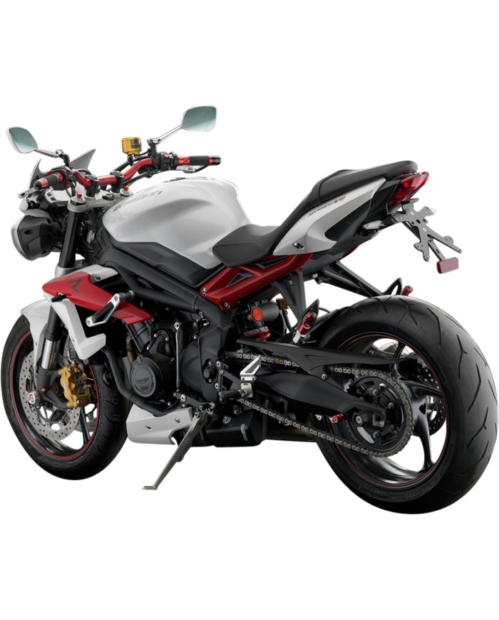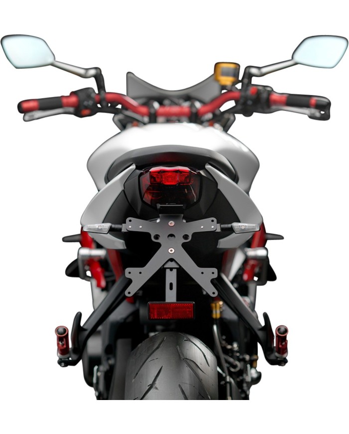 Il supporto per targa Fox in alluminio è progettato appositamente per ogni modello di moto. Ciò gli consente non solo di adattarsi perfettamente alle linee della moto, ma anche di distinguersi per la sua installazione semplice e veloce. Ogni kit contiene tutti i componenti necessari per il montaggio, senza necessità di modificare i componenti OEM. Massima funzionalità in uno spazio ridotto e rispetto delle norme di omologazione. I kit Fox comprendono un'illuminazione della targa a LED SMD, un riflettore e adattatori per indicatori di direzioneRizoma, sono regolabili e dotati di un dispositivo di bloccaggio per fissare la corretta inclinazione.
