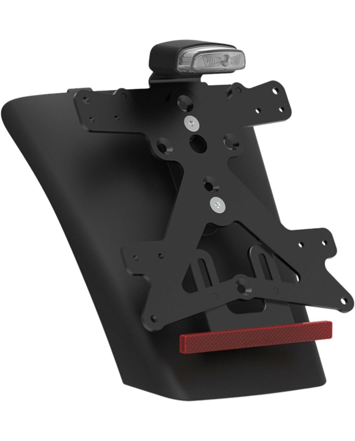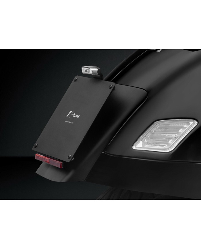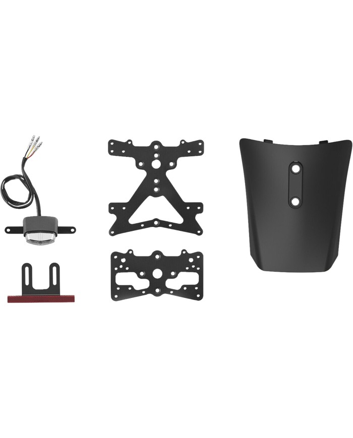 Il kit comprende tutto il necessario per personalizzare il tuo scooter nel rispetto dei requisiti di legge. Il coperchio in tecnopolimero costituisce la base del resistente supporto targa in alluminio e funge anche da parafango. Il kit comprende anche il catarifrangente, il fascio di cavi e la luce posteriore. Il fanale posteriore è posizionato più in alto e svolge così tre funzioni: illuminazione della targa, luce di posizione e luce di stop. Il portatarga è facile da montare e l'inclinazione della targa può essere regolata individualmente tramite il perno di sicurezza in dotazione. E il meglio: il portatarga Rizoma è certificato ABE e soddisfa quindi tutti i requisiti di legge.