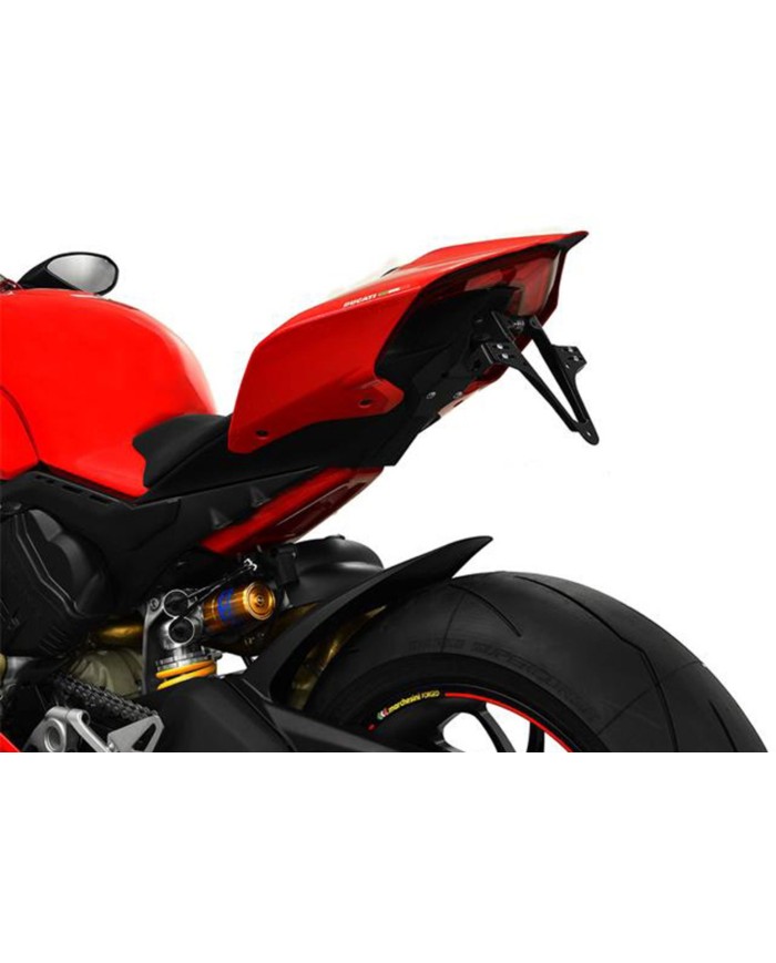 Portatarga di alta qualità in acciaio verniciato a polvere nero - resistente e resistente alle intemperie. Grazie all'angolo di inclinazione regolabile in modo continuo, la forma di questo supporto è perfettamente adattabile. Non è necessario modificare alcun elemento della carenatura.