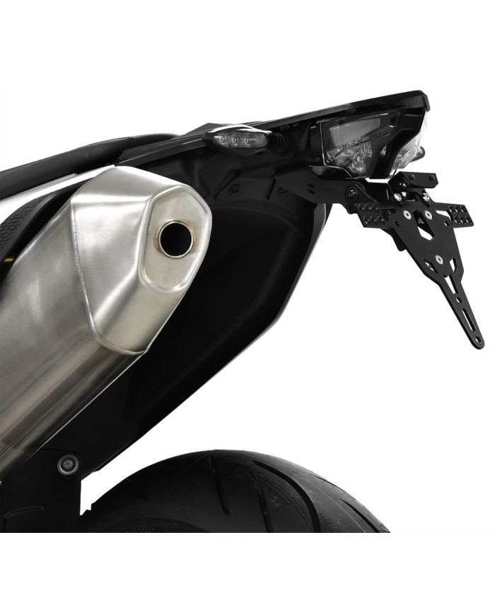 Rivestimento epossidico nero Il supporto per targa è adatto a tutti i tipi di targhe (larghezza 175 mm)Non è necessario modificare alcun elemento della carenatura L'inclinazione è completamente regolabile Sono possibili 3 posizioni di regolazione per i supporti degli indicatori di direzione Adattamento perfetto, look sportivo Nessuna iscrizione richiesta sul certificato TÜV, nessuna omologazione ABE necessaria Anche le teste delle viti sono a filo con il supporto per garantire che la targa sia posizionata in pianoContenuto della confezione: