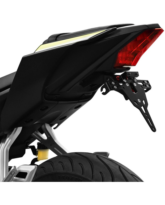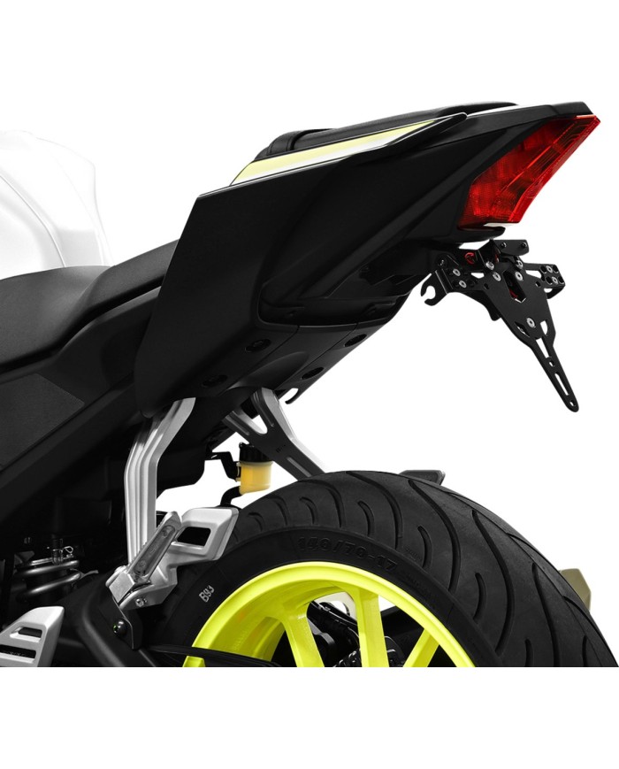 Rivestimento epossidico nero Il supporto per targa è adatto a tutti i tipi di targhe (larghezza 175 mm)Non è necessario modificare alcun elemento della carenatura. L'inclinazione è completamente regolabile. Sono possibili 3 posizioni di regolazione per i supporti degli indicatori di direzione. Adattamento perfetto, look sportivo. Non è richiesta alcuna iscrizione sul certificato TÜV, né alcuna omologazione ABE. Anche le teste delle viti sono a filo con il supporto per garantire che la targa sia posizionata in piano.