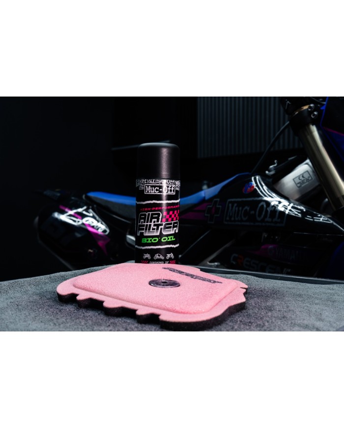 \r\nScoprite l'olio filtro aria biologicoMuc-Off, la prima linea di difesa del vostro motore contro polvere, sporco e depositi che cercano di penetrare nel motore. Questa formula ad alte prestazioni è progettata per garantire il massimo flusso d'aria e una filtrazione di nuova generazione, catturando lo sporco e consentendo al motore di respirare in modo fresco e veloce con le massime prestazioni.