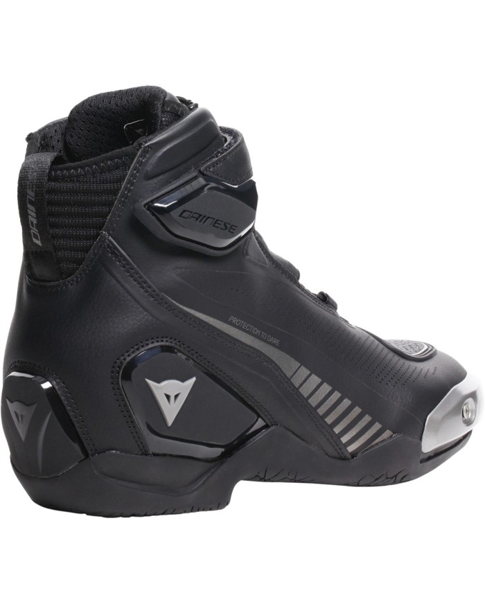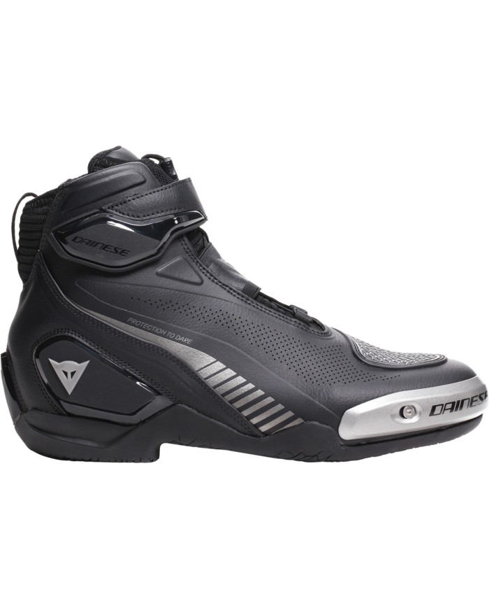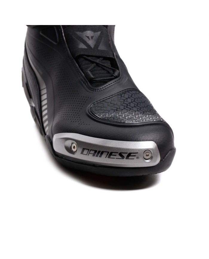 La protezione avanzata è garantita dagli slider in magnesio sulla punta, nella zona del malleolo e dai rinforzi sul tallone, tecnologie che richiamano gli standard di protezione degli stivali da moto Dainese, garantendo al contempo il comfort e la versatilità di una scarpa.