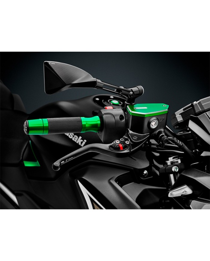Il sistema di regolazione e il vetro dello specchio blu antiriflesso combinano flessibilità e comfort con un design senza compromessi. Con il suo stile esclusivo, lo specchio Tomok conferisce tratti di design marcati e dinamici e si adatta perfettamente a ogni linea di moto, sia Naked che Supersport. Il profilo dello specchio e l'elegante finitura, come elemento di stile inimitabile delRizoma, vengono così valorizzati.