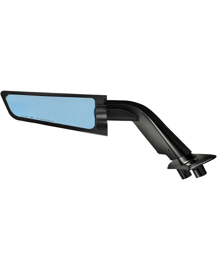 Progettato per scomparire. Nato per andare oltre. Appositamente progettato per le moto sportive, Stealth Sport è stato concepito per ridurre al minimo l'impatto visivo e dominare l'aria. Tre elementi: una base fissa integrata nella carenatura, un braccio girevole per ripiegare lo specchio verso l'interno e un corpo mobile che protegge il vetro. Con un solo movimento, la struttura si compatta e trasforma lo specchio in un'ala aerodinamica. Il risultato: una portanza percepibile, fino a 4 kg a 300 km/h. Lavorato da un unico blocco di alluminio e rifinito con un'anodizzazione profonda, è dotato di una lente convessa colorata in blu HD per una visione chiara e senza abbagliamento.