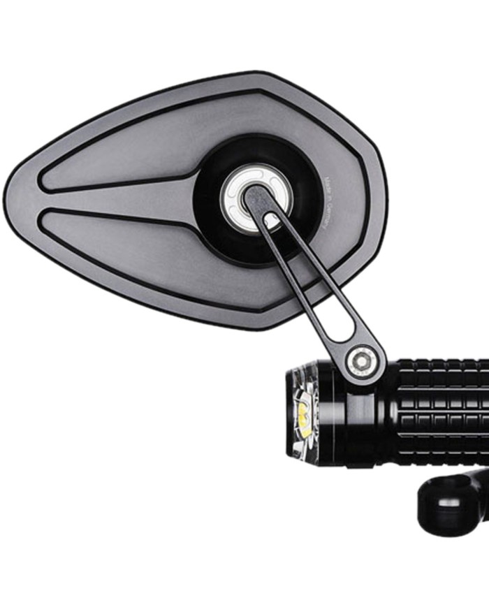 motogadget presenta in esclusiva la sua serie di specchietti retrovisori senza vetromo.view. La particolarità di questo specchietto retrovisore per moto è la superficie riflettente brevettata, che è direttamente integrata nel metallo del corpo. È l'alluminio stesso a costituire la superficie riflettente!