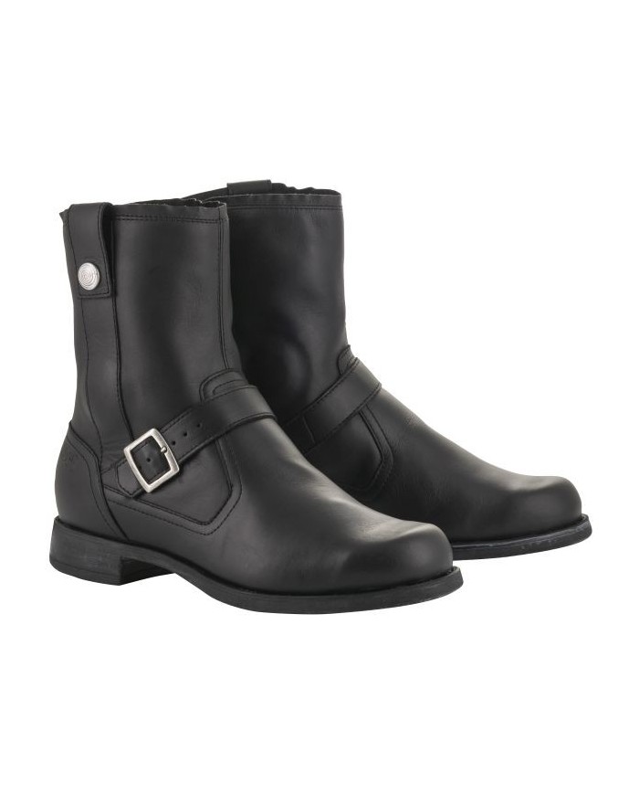 La scarpa da moto Alpinestars Camargue V2 ha un elegante look vintage e un colore scuro. Grazie al suo elevato fattore di protezione e alle numerose caratteristiche volte ad aumentare il comfort, questo stivale è il compagno ideale del motociclista classico. Tipo di motociclista e forma fisica Questo stivale da moto è adatto al motociclista classico e al café racer. Il modello alto ha una calzata molto comoda e si caratterizza per il suo look vintage. Con questo stivale sei ben equipaggiato sia in estate che fuori stagione. Materiale e caratteristiche Per offrirti la resistenza all'abrasione necessaria in caso di caduta, la scarpa è rivestita da uno strato esterno in pelle integrale. Per garantire che lo stivale sia certificato CE, è dotato di un rinforzo sul tallone e sulla punta e di una protezione per la caviglia. La cerniera consente di infilare facilmente lo stivale e la fibbia permette di personalizzarlo in base alle proprie esigenze. Inoltre, la cinghia elastica offre un maggiore comfort durante la camminata e le suole antiscivolo garantiscono una buona aderenza alconduite.OptionsLa suola anatomica è rimovibile e può essere sostituita in qualsiasi momento.moment.Champo di applicazione Stivali Camargue V2