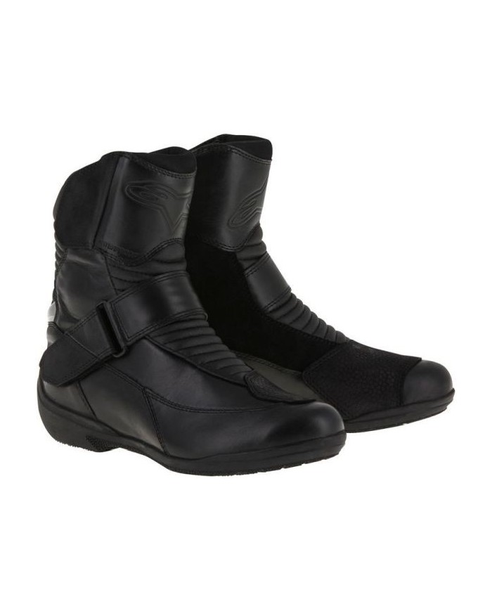 Lo stivale Alpinestars Stella Valencia è un vero tuttofare. Questi stivali da moto di media altezza sono progettati per i motociclisti turistici che cercano un po' più di comfort. Lo stivale Stella Valencia è dotato di ampi inserti elasticizzati per garantire maggiore libertà di movimento e facilitare la camminata. Tipo di motociclista e forma fisica Questo stivale è adatto ai motociclisti turistici o amatoriali che viaggiano in tutte le condizioni atmosferiche. Il taglio femminile è particolarmente adatto ai piedi stretti o medi. Materiale e caratteristiche Per garantire comfort e durata adeguati, lo stivale Stella Valencia è realizzato in pelle di vacchetta pieno fiore. Questo materiale si usura delicatamente e si adatta al piede nel tempo. Una membrana Drystar impermeabile e traspirante mantiene i piedi asciutti. Il tallone è rinforzato con TPU a doppia densità, in modo che questo punto critico sia ben protetto in caso di impatto. Naturalmente, questa scarpa è dotata di protezione per la caviglia ed è quindi certificata CE. La suola è realizzata con un nuovo tipo di gomma leggera che offre al motociclista un'aderenza sufficiente e protegge il piede. Lo stivale è dotato di ampi inserti elasticizzati a fisarmonica nella parte anteriore e posteriore per offrirti la libertà di movimento di cui hai bisogno. Inoltre, lo stivale è dotato di un ampio ingresso e di varie cinghie di regolazione per indossare rapidamente gli stivali da moto efacilement.OptionsLae suola anatomica è rimovibile e può essere sostituita in qualsiasi momento.moment.Champe di applicazione: Stivali impermeabili Stella Valencia