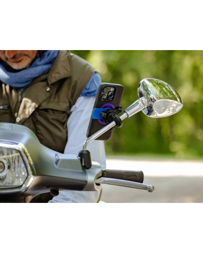 Il supporto per specchietto retrovisore Quad Lock può essere facilmente fissato a qualsiasi specchietto standard di moto e scooter ed è compatibile con tutte le custodie Quad Lock e l'adattatore universale Quad Lock. In questo modo, il tuo cellulare potrà guidarti in tutta sicurezza fino a destinazione e potrai condividere le impressioni del tuo viaggio con familiari e amici. Il supporto per specchietto è la soluzione perfetta per chi preferisce viaggiare su due ruote.