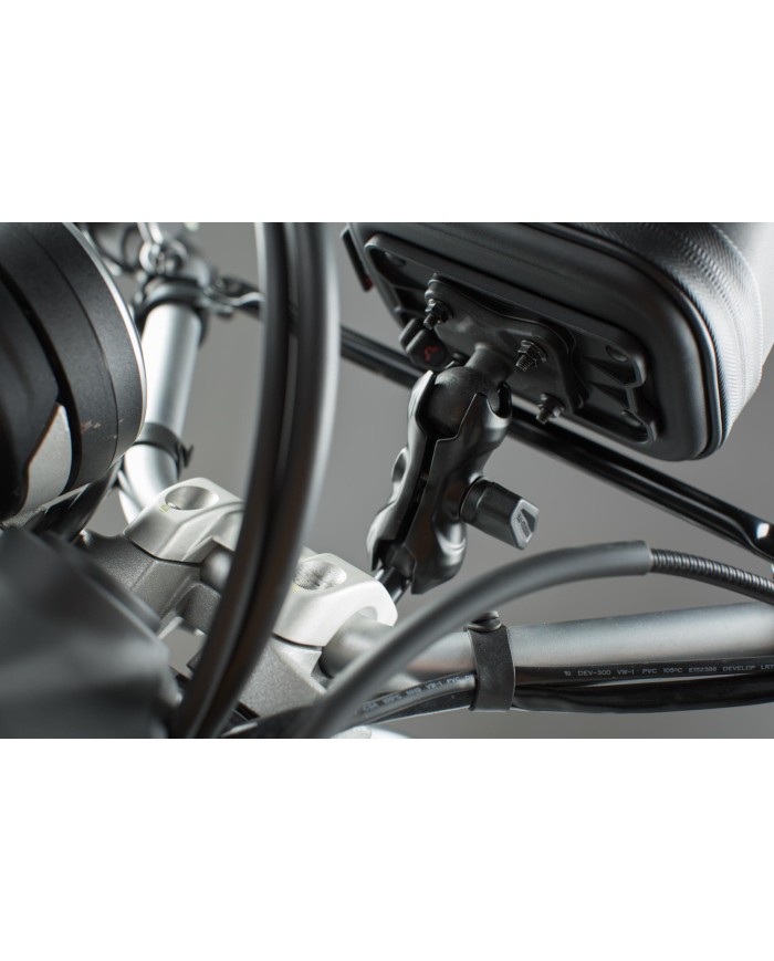 Montaggio semplice, universalmente utilizzabile. I kit di supporto GPS consentono diverse varianti di montaggio di un dispositivo di navigazione sulla moto, senza necessità di ulteriori accessori. Indipendentemente dal fatto che si tratti di specchietti retrovisori, diverse prese con sfera M6 o M8 e braccio RAM girevole. Si consiglia il fissaggio al manubrio con una pinza di montaggio in plastica rinforzata con fibra di vetro.