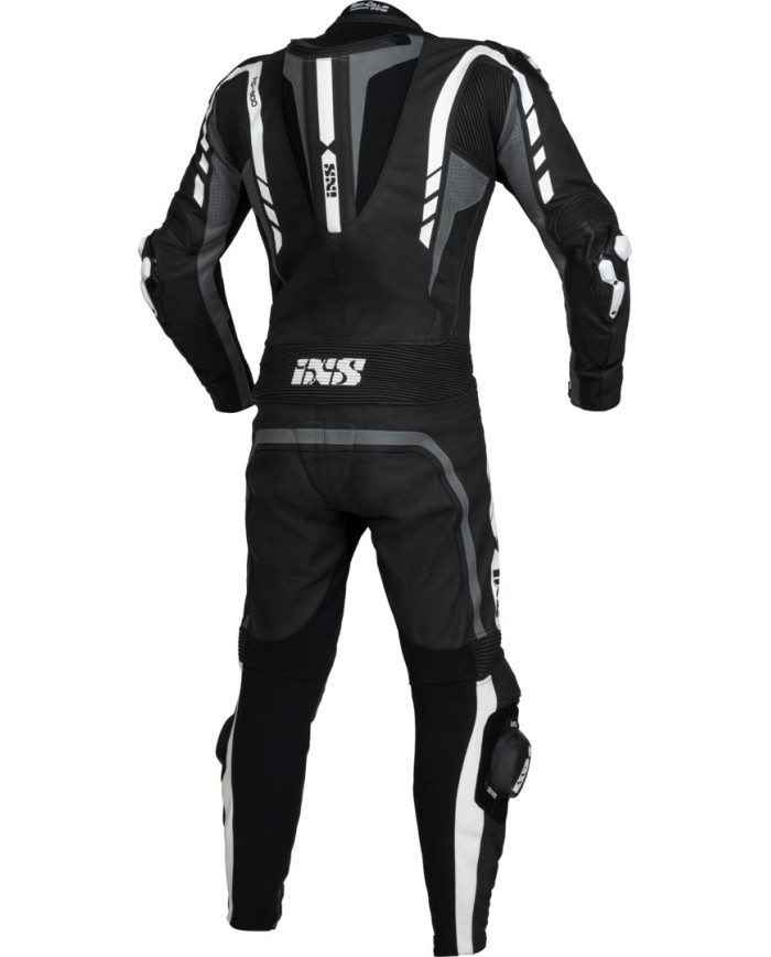 Tuta intera in pelle di vacchetta nappa con dispositivo per l'installazione di una sacca idrica nella gobba aerodinamica